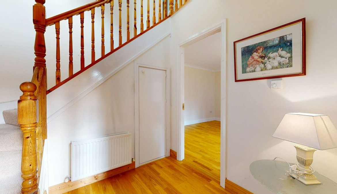Entrance Hall: 4.4m x 1.73m Enter into a spacious hallway with double height ceiling, semi-solid timber flooring and good sized understairs storage.