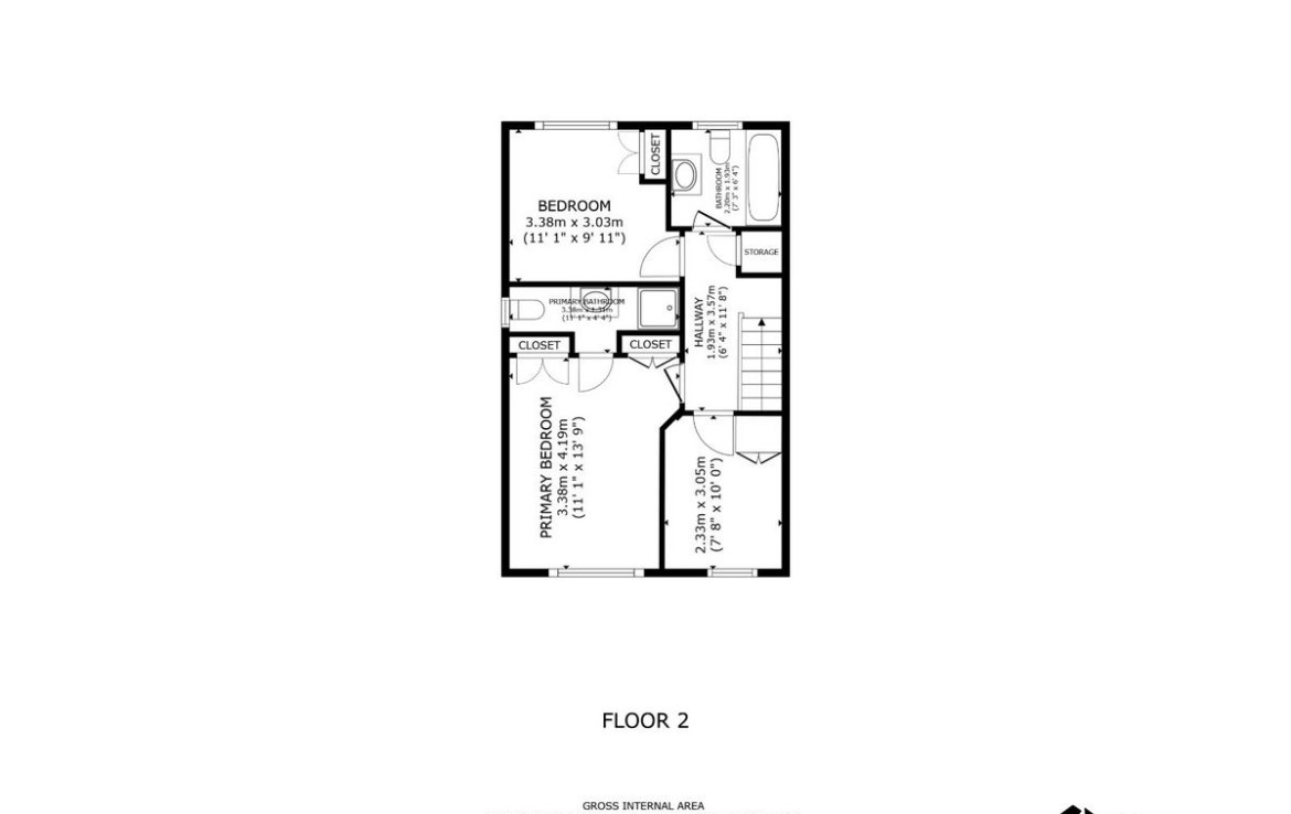 Bedroom Two: 3.38m x 3.03m: To the rear with built in wardrobes.