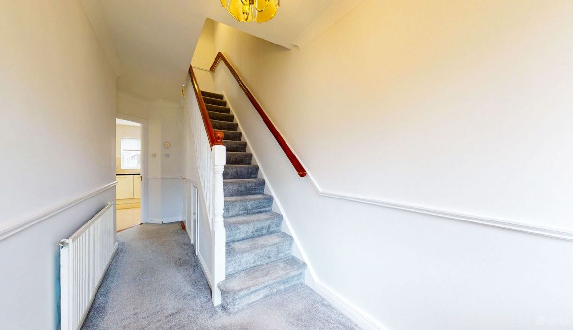 Hallway: 5.00m x 1.84m: Spacious hallway with dado rail and understairs storage. Guest w.c. with two piece suite.