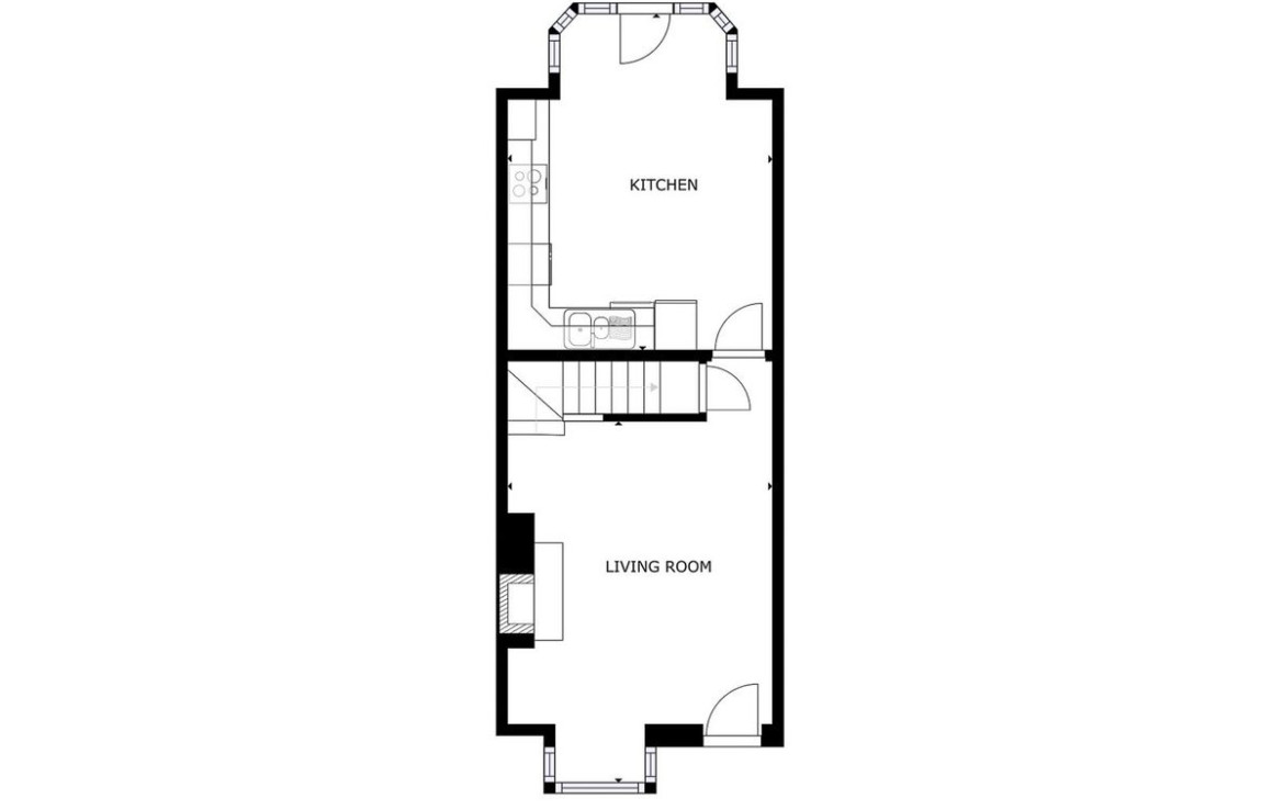 Kitchen cum Dining Room: 3.74m x 3.5m Eye and floor level kitchen units with tall fridge freezer, washing machine, oven, hob and extractor fan. Tiled flooring and splashback. Bay window with rear door to communal garden.